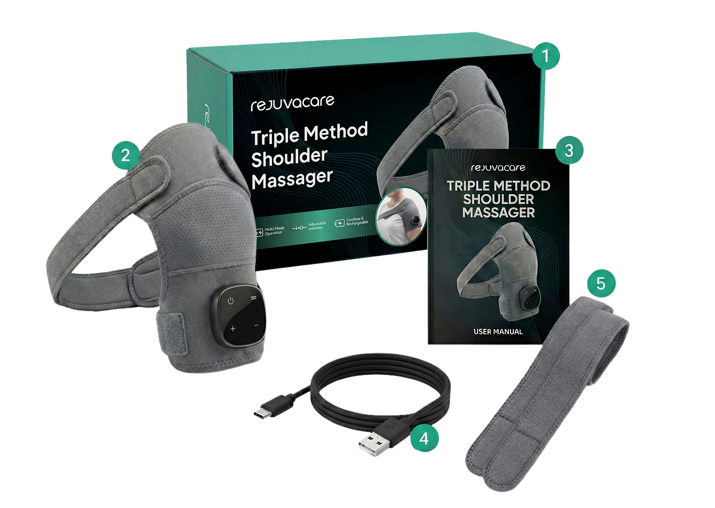 Cette méthode « Triple Action » combine chaleur de précision, compression ciblée et vibration thérapeutique — ce qui augmente le flux sanguin vers votre épaule.