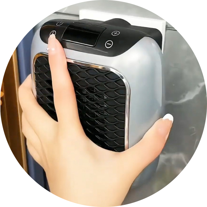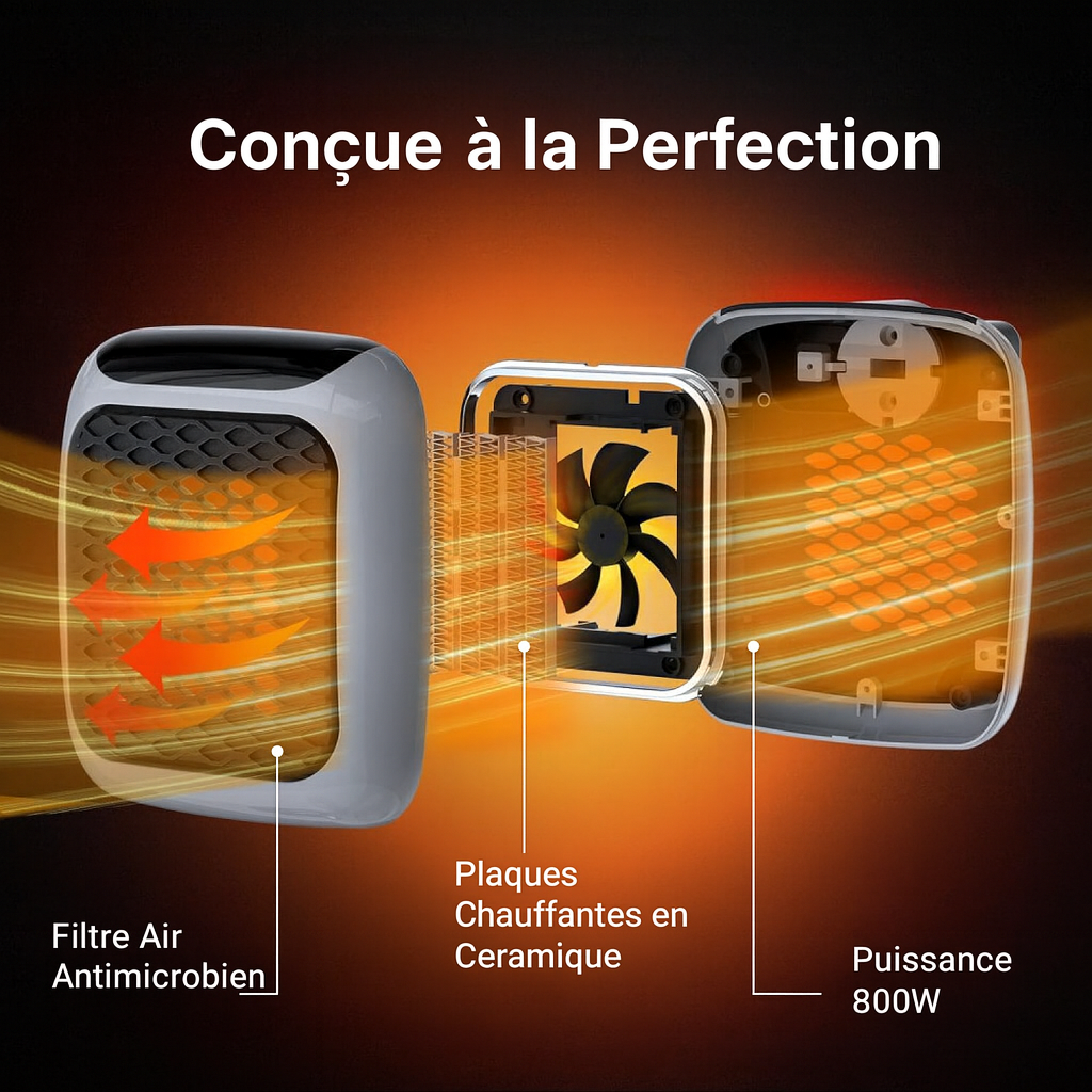 Malgré sa taille compacte,  ChauffeRapid chauffe rapidement des pièces jusqu'à 12 m², idéal pour les chambres, les bureaux et autres espaces. Sa conception portable le rend facile à déplacer, tandis que son filtre antimicrobien intégré purifie l'air tout en chauffant, idéal pour les personnes allergiques. Pour plus de sécurité, ChauffeRapid dispose d'un mode de refroidissement automatique pour éviter la surchauffe et prolonger sa durée de vie.