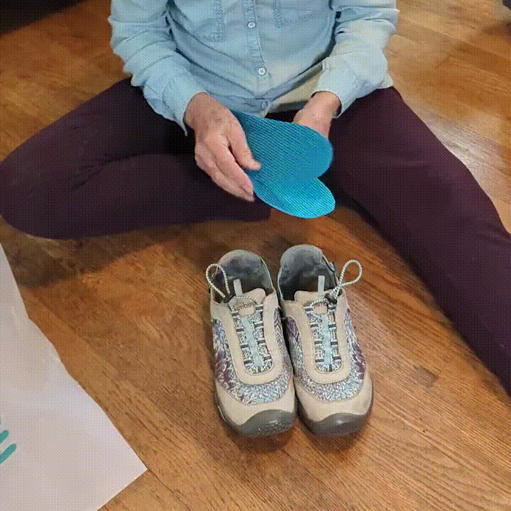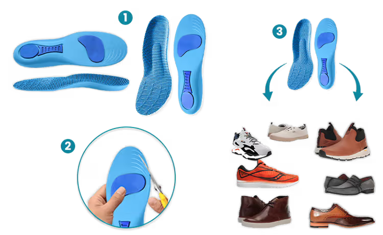 Facile à utiliser : insérez simplement les semelles SteppyConfort chaque matin pour un soulagement tout au long de la journée.