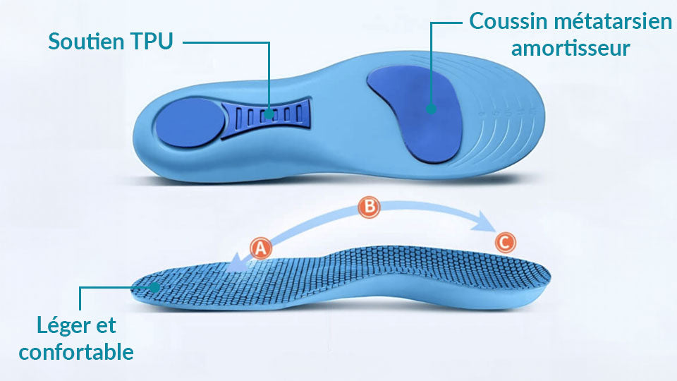 En offrant un soutien constant tout au long de la journée, ces semelles contribuent à stabiliser le pied, ce qui est essentiel pour améliorer la circulation sanguine. Une meilleure circulation permet aux nutriments essentiels d'atteindre les terminaisons nerveuses de vos pieds.