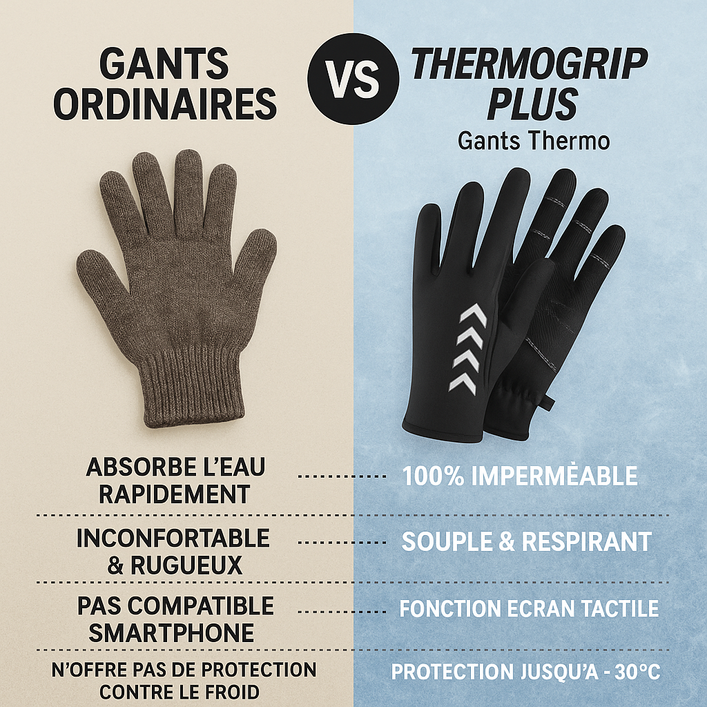 Portez les gants ThermoGrip Plus partout, quelles que soient les conditions météorologiques. Fabriqués en tissu isolant premium 3 couches de haute qualité.