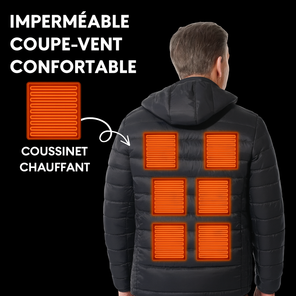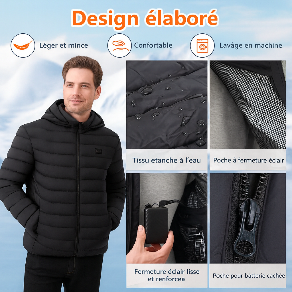 Oui ✅ Les résistances thermiques sont protégées à l'intérieur du tissu waterproof. Il n'y a aucun risque d'électrocution, même sous la pluie ou la neige. La veste fonctionne en basse tension USB, ce qui la rend totalement sûre pour un usage quotidien.
